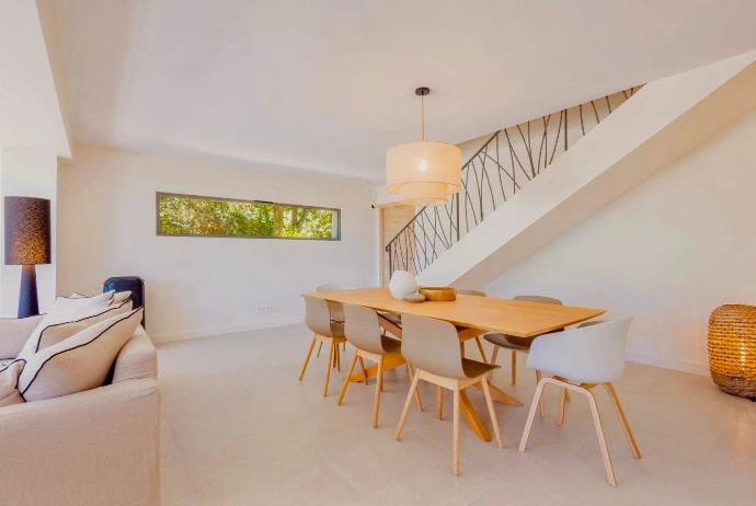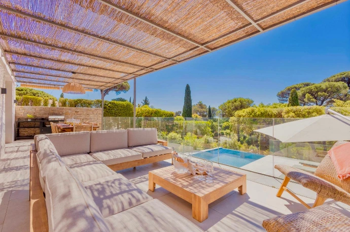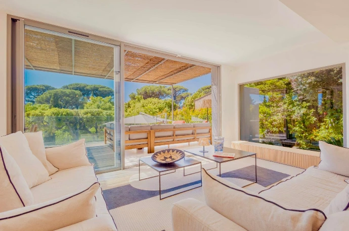 À quelques pas de la plage, la villa Pénélope incarne l’élégance des vacances méditerranéennes. Nichée dans un environnement paisible, elle conjugue avec subtilité le charme tropézien et des lignes contemporaines, dans un style résolument épuré.