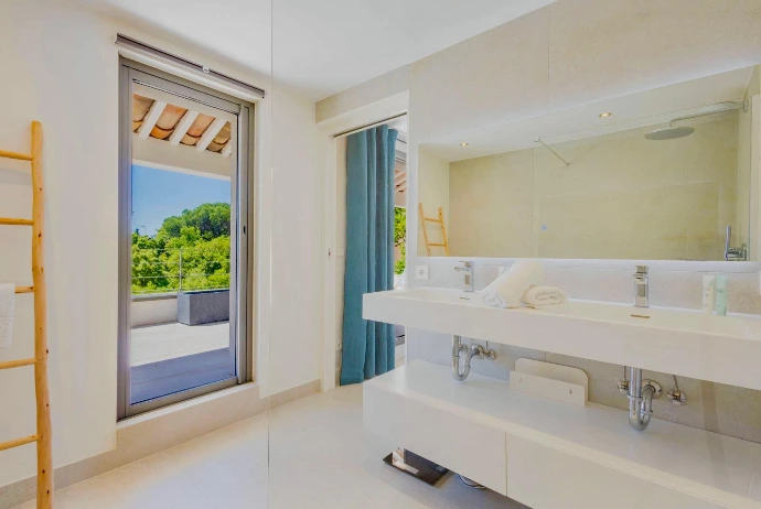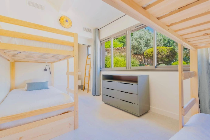 À l’extérieur, le jardin en restanque prolonge l’expérience. En contrebas, la piscine invite à la détente sous le soleil varois, tandis que le terrain de pétanque devient le théâtre de fins de journées conviviales. Entre mer et ciel, ombre et lumière, la villa Pénélope offre un cadre privilégié pour savourer pleinement l’art de vivre sur la Côte d’Azur.