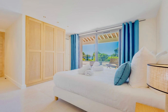 Entièrement rénovée, cette villa de 150 m² dévoile des espaces lumineux où la mer s’invite à chaque instant. Elle offre depuis la pièce de vie et la terrasse une vue imprenable sur l’horizon azur et le clocher de Saint-Tropez, comme un tableau vivant qui évolue au fil de la journée.